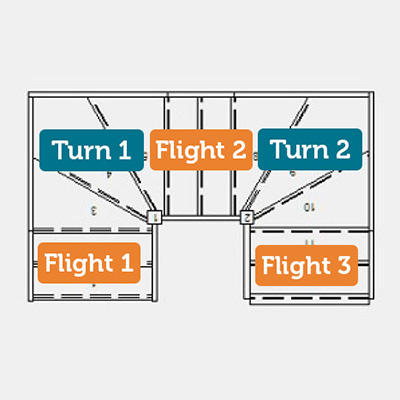If you have a turn in the staircase, your staircase will come with a newel at the centre of the turn. Click “Yes” and our tool will allow you to choose where on your staircase you would like newel posts.